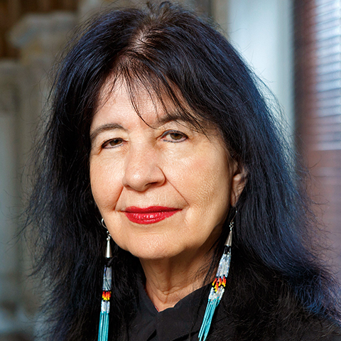 Joy Harjo, the 23rd Poet Laureate of the United States, is a member of the Muscogee Nation. She is only the second poet to be appointed a third term as U.S. Poet Laureate. Harjo is the author of ten books of poetry, including her most recent, Weaving Sundown in a Scarlet Light: Fifty Poems for Fifty Years (2022), the highly acclaimed An American Sunrise (2019), which was a 2020 Oklahoma Book Award Winner, Conflict Resolution for Holy Beings (2015), which was shortlisted for the Griffin Prize and named a Notable Book of the Year by the American Library Association, and In Mad Love and War (1990), which received an American Book Award and the Delmore Schwartz Memorial Award.